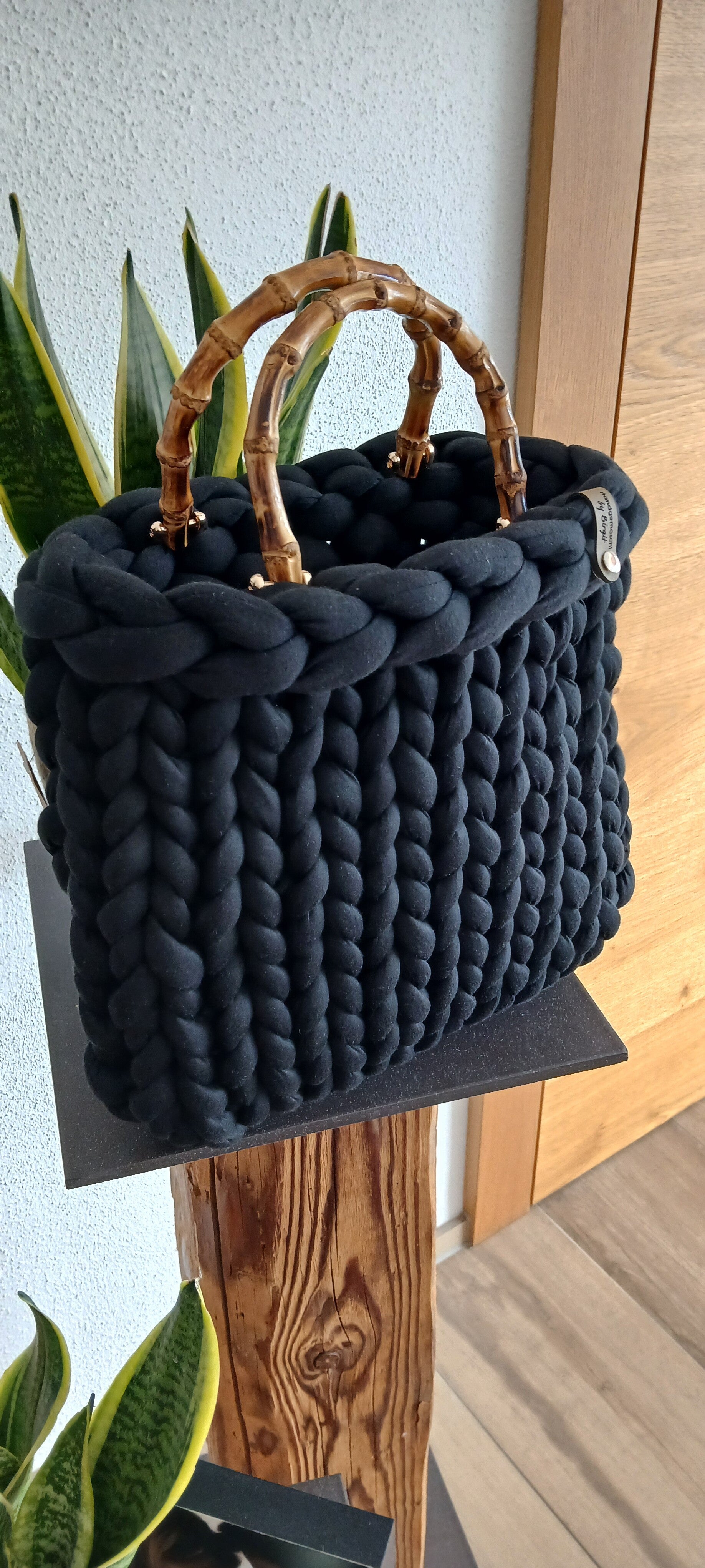 Grobstricktasche mit Bambusgriff
